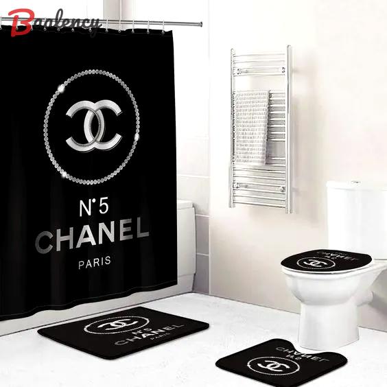 Transform your bathroom into a personal oasis deserving of royalty – add our Chanel Shower Curtain N5 coco Chanel black luxury bathroom set to cart now, because true